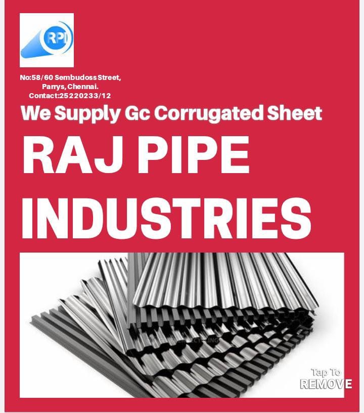 GC Corrugated Sheets 0.16mm to 1.2mm thickness, Length 4Feet/ 5Feet/ 6Feet/ 8Feet / 10Feet / 12Feet/14Feet and Width 2.75Feet/ 3Feet & 3 .5Feet available. Tata, Jsw, Jindal India, Evonith Neelphank brands available. 1. GI Corrugated Sheet Dealers in Chennai. 2. Jindal GC Sheets Rate in Chennai. 3. 8Feet GC Sheet Price Chennai.