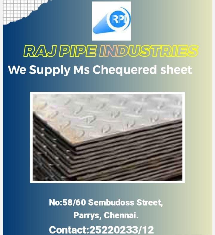 MS Chequered Plate 3mm to 10mm thickness, Length Customized and Width 4Feet and 5Feet available. Embossed Chequered Plate 2mm & 2.5mm thickness available. 1. Mild Steel Chequered Plate Dealers in Chennai. 2. 5mm Steel Checker Plate Rate in Chennai. 3. MS Checkered Plate Price in Chennai.